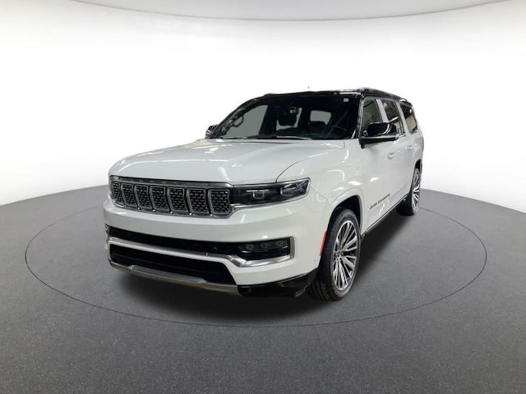 Quick Order Package 28W, Two Tone Paint Group, Grand Wagoneer L Series III, Balance of Factory Warranty, 4D Sport Utility, 3.0L I6, 8-Speed Automatic, 4WD, Bright White Clearcoat, Global Black Leather, 3.92 Rear Axle Ratio, 3rd row seats: bench, 4-Wheel Disc Brakes, ABS brakes, Adjustable pedals, Air Conditioning, Alloy wheels, AM/FM radio: SiriusXM with 360L, Anti-whiplash front head restraints, Apple CarPlay/Android Auto, Audio memory, Auto High-beam Headlights, Auto-dimming door mirrors, Auto-dimming Rear-View mirror, Auto-leveling suspension, Automatic temperature control, Brake assist, Bumpers: body-color, Compass, Delay-off headlights, Driver door bin, Driver vanity mirror, Driver's Seat Mounted Armrest, Dual front impact airbags, Dual front side impact airbags, Electronic Stability Control, Emergency communication system, Four wheel independent suspension, Front anti-roll bar, Front Bucket Seats, Front Center Armrest w/Storage, Front dual zone A/C, Front fog lights, Front reading lights, Fully automatic headlights, Garage door transmitter, Genuine wood console insert, Genuine wood dashboard insert, Genuine wood door panel insert, Heads-Up Display, Heated door mirrors, Heated front seats, Heated rear seats, Heated steering wheel, Illuminated entry, Knee airbag, Leather steering wheel, Low tire pressure warning, Memory seat, Navigation System, Night vision lights, Normal Duty Suspension, Occupant sensing airbag, Outside temperature display, Overhead airbag, Overhead console, Panic alarm, Passenger door bin, Passenger seat mounted armrest, Passenger vanity mirror, Pedal memory, Power adjustable front head restraints, Power door mirrors, Power driver seat, Power Liftgate, Power moonroof, Power passenger seat, Power steering, Power Windows, Premium Leather Trimmed Bucket Seats, Radio data system, Radio: Uconnect 5 Nav w/12.0" Display, Rain sensing wipers, Rear air conditioning, Rear anti-roll bar, Rear dual zone A/C, Rear reading lights, Rear seat center armrest, Rear window defroster, Rear window wiper, Reclining 3rd row seat, Remote keyless entry, Roof rack, Security system, Speed control, Speed-sensing steering, Speed-Sensitive Wipers, Split folding rear seat, Steering wheel memory, Steering wheel mounted audio controls, Tachometer, Telescoping steering wheel, Tilt steering wheel, Traction control, Trip computer, Turn signal indicator mirrors, Variably intermittent wipers, Ventilated front seats, Ventilated rear seats, Voltmeter, and Wheels: 22" x 9.0" Premium 4 Aluminum.