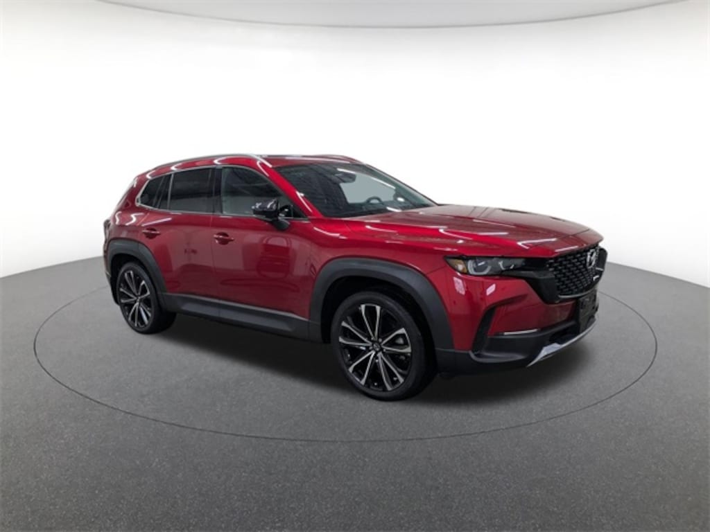 Cargo Package (Cargo Blocks), 12 Speakers, 20" x 8J Aluminum Alloy Wheels, 3.841 Axle Ratio, 4-Wheel Disc Brakes, ABS brakes, Air Conditioning, Alloy wheels, AM/FM radio: SiriusXM, AppLink/Apple CarPlay and Android Auto, Auto High-beam Headlights, Auto-dimming door mirrors, Auto-dimming Rear-View mirror, Automatic temperature control, Brake assist, Bumpers: body-color, Compass, Delay-off headlights, Driver door bin, Driver vanity mirror, Dual front impact airbags, Dual front side impact airbags, Electronic Stability Control, Emergency communication system: MAZDA CONNECT, Front anti-roll bar, Front Bucket Seats, Front Center Armrest, Front dual zone A/C, Front reading lights, Front wheel independent suspension, Fully automatic headlights, Garage door transmitter: HomeLink, Heads-Up Display, Heated & Ventilated Front Bucket Seats, Heated door mirrors, Heated front seats, Heated rear seats, Heated steering wheel, Illuminated entry, Knee airbag, Leather Seat Trim, Leather Shift Knob, Leather steering wheel, Low tire pressure warning, Memory seat, Navigation system: MAZDA CONNECT, Occupant sensing airbag, Outside temperature display, Overhead airbag, Overhead console, Panic alarm, Passenger door bin, Passenger vanity mirror, Power door mirrors, Power driver seat, Power Liftgate, Power moonroof, Power passenger seat, Power steering, Power windows, Radio data system, Radio: AM/FM/HD Audio System, Rain sensing wipers, Rear seat center armrest, Rear window defroster, Rear window wiper, Remote keyless entry, Soul Red Crystal Metallic Paint Charge, Speed control, Speed-sensing steering, Split folding rear seat, Spoiler, Steering wheel mounted audio controls, Tachometer, Telescoping steering wheel, Tilt steering wheel, Traction control, Trip computer, Turn signal indicator mirrors, Variably intermittent wipers, and Ventilated front seats.