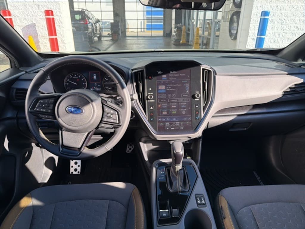 BSD/RCTA & Power Driver Seat & Power Moonroof (10-Way Power Driver's Seat, Blind Spot Detection w/Rear Cross-Traffic Alert, and Power Moonroof), 3.70 Axle Ratio, 4-Wheel Disc Brakes, 6 Speakers, ABS brakes, Air Conditioning, All-Weather Floor Liners (DISC), Alloy wheels, AM/FM radio: SiriusXM, Anti-whiplash front head restraints, Auto High-beam Headlights, Auto-Dimming Mirror w/Compass & HomeLink, Automatic temperature control, Brake assist, Bumpers: body-color, Driver door bin, Driver vanity mirror, Dual front impact airbags, Dual front side impact airbags, Electronic Stability Control, Emergency communication system: STARLINK Safety and Security (Subscription Required), Exterior Parking Camera Rear, Four wheel independent suspension, Front anti-roll bar, Front Bucket Seats, Front Center Armrest, Front dual zone A/C, Front fog lights, Front reading lights, Fully automatic headlights, Heated door mirrors, Heated Front Bucket Seats, Heated front seats, Illuminated entry, Knee airbag, Leather Shift Knob, Low tire pressure warning, Occupant sensing airbag, Outside temperature display, Overhead airbag, Overhead console, Panic alarm, Passenger door bin, Passenger vanity mirror, Power door mirrors, Power steering, Power windows, Radio data system, Radio: Subaru STARLINK 11.6" Multimedia Plus Sys, Rear anti-roll bar, Rear seat center armrest, Rear window defroster, Rear window wiper, Remote keyless entry, Security system, Speed control, Speed-sensing steering, Splash Guards, Split folding rear seat, Spoiler, Sport Cloth Upholstery, STARLINK/Apple CarPlay/Android Auto, Steering wheel mounted audio controls, Tachometer, Telescoping steering wheel, Tilt steering wheel, Traction control, Trip computer, Turn signal indicator mirrors, Variably intermittent wipers, and Wheels: 18" x 7.0J Dark Gray Aluminum Alloy.